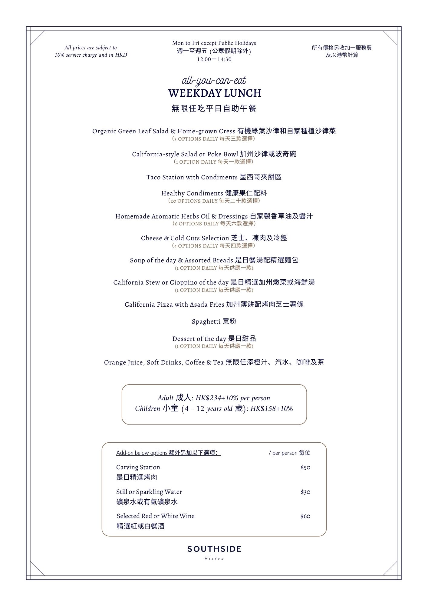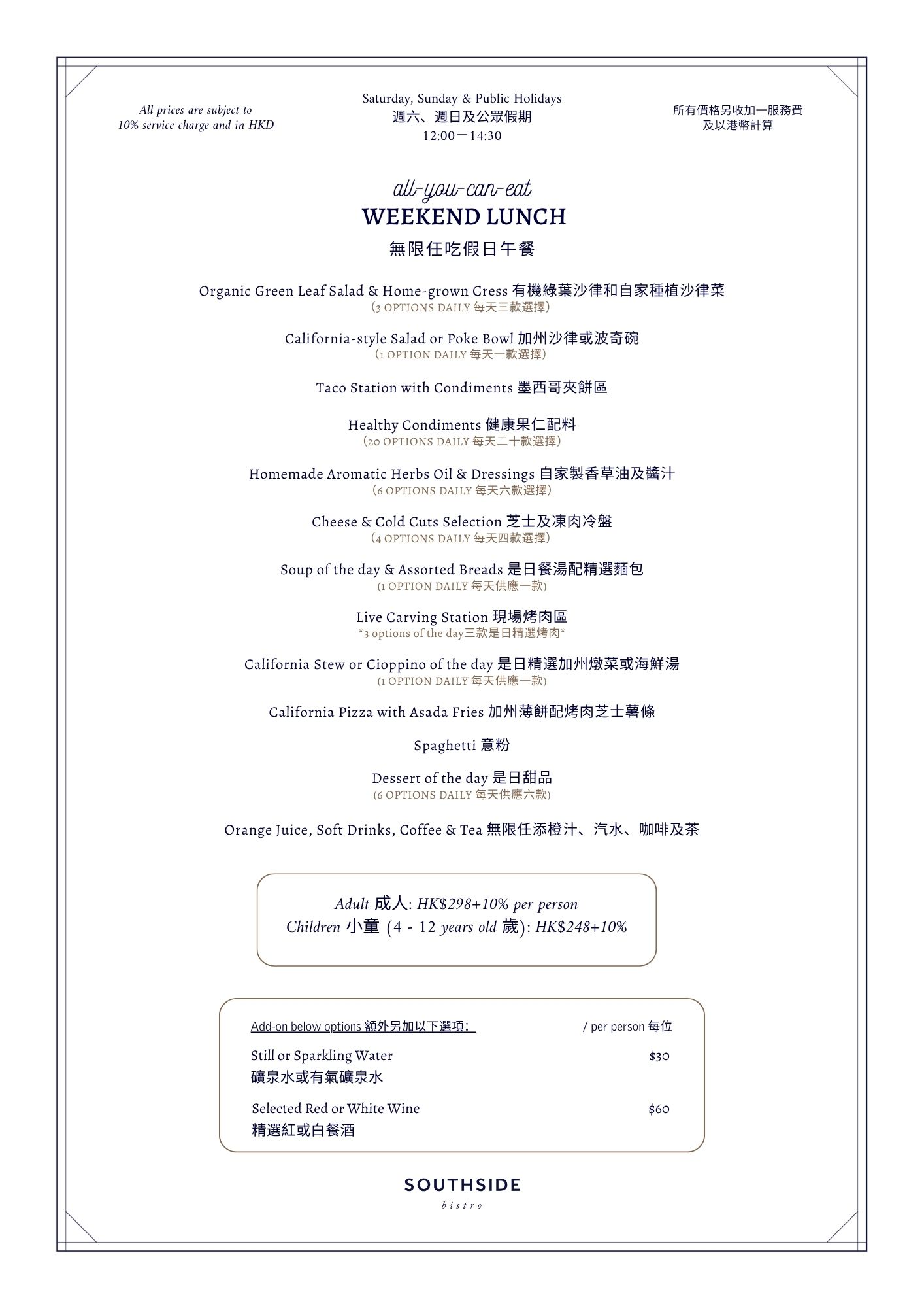 - All price are in HKD and already include a 10% service charge (based on original price)