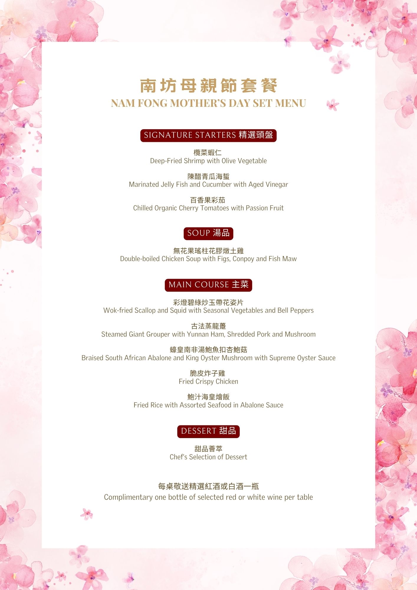 南坊母親節十道菜限定套餐 | 5月3至10日 (晚市供應)