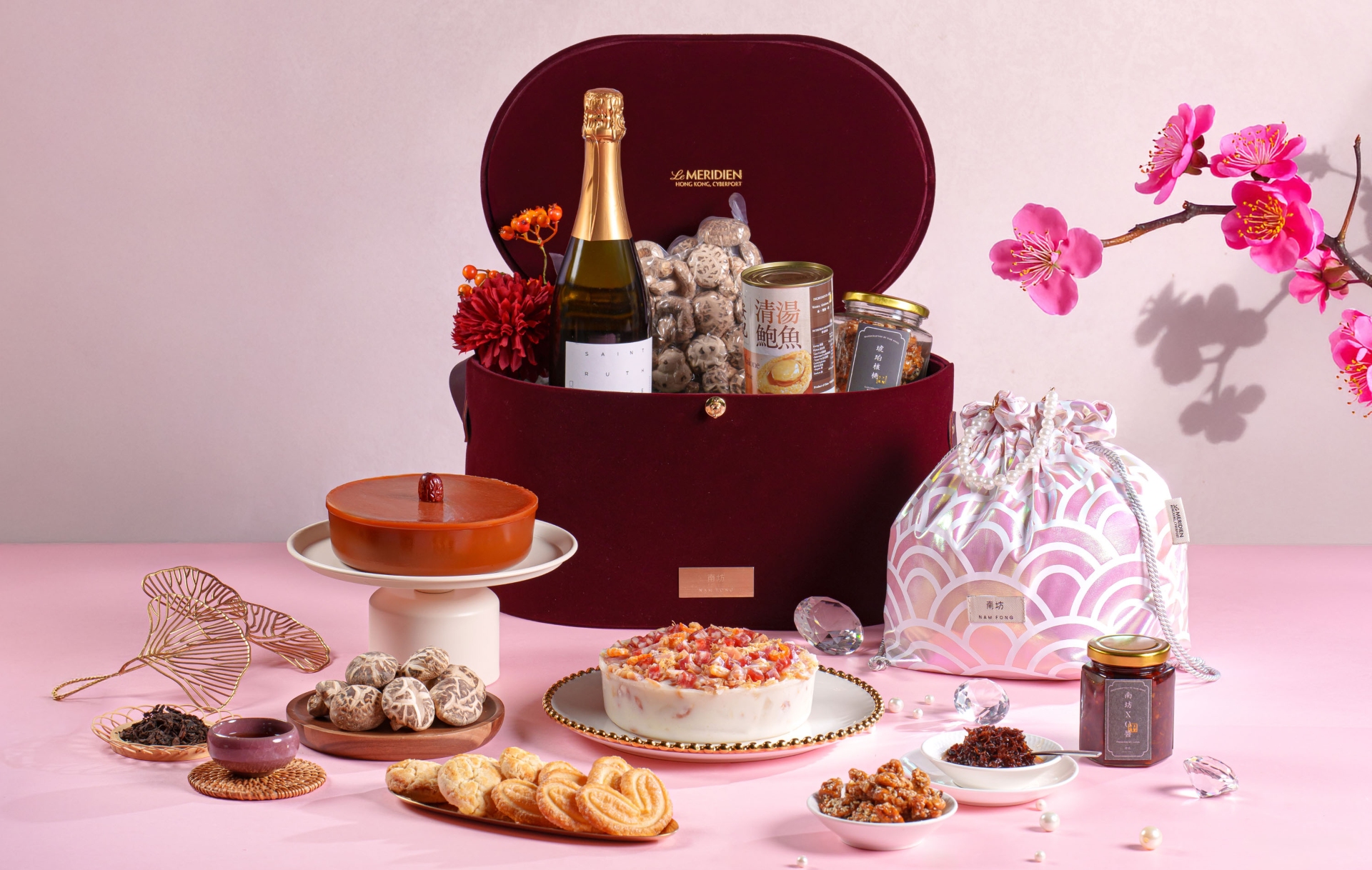 - 賀年糕點禮盒及禮籃可於指定換領日期的中午12時至晚上8時於香港數碼港艾美酒店南坊換領